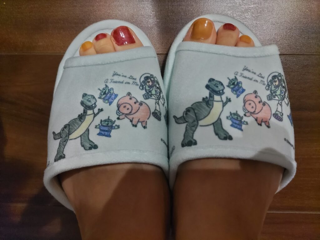 一目ぼれと言っても言い過ぎではない、トイ・ストーリーのかかとのないスリッパを購入して帰宅。