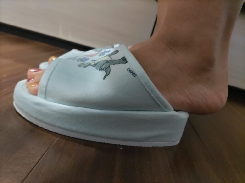 ダイソーに行く予定をしていた日の朝、自分が履いているスリッパを見て思いました。
